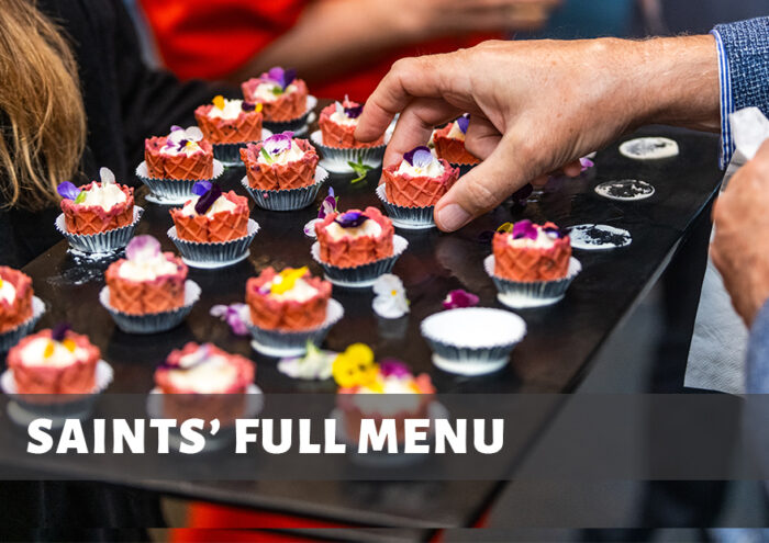 Explore our menus. We aim to make your catering experience seamless and stress-free. Depending on the style event and size, Saints Catering can manage the set-up, clean up, provide equipment and staff. Our team can be dressed in Saints polo shirts or black and whites for more formal events.